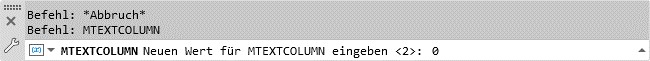 In der Praxis erstellt man nur selten Pläne mit so langen Texten, die eine Trennung in mehrere Spalten verursacht. 2 bis 3 Zeilen reichen meistens aus. Zum Glück gibt es eine Variable, die dieses Verhalten regelt: MTEXTCOLUMN. Diese Variable kann drei Werte haben: