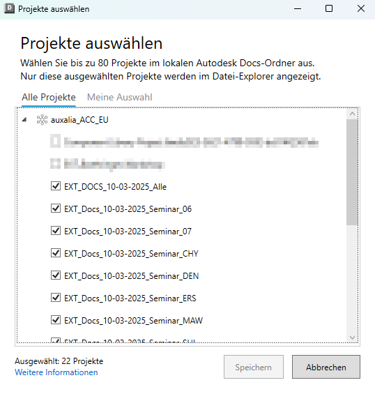 Wählen Sie die Projekte aus, die Sie im Windows Explorer angezeigt bekommen wollen. So behalten Sie den Überblick über die für Sie wichtigen Projekte.
