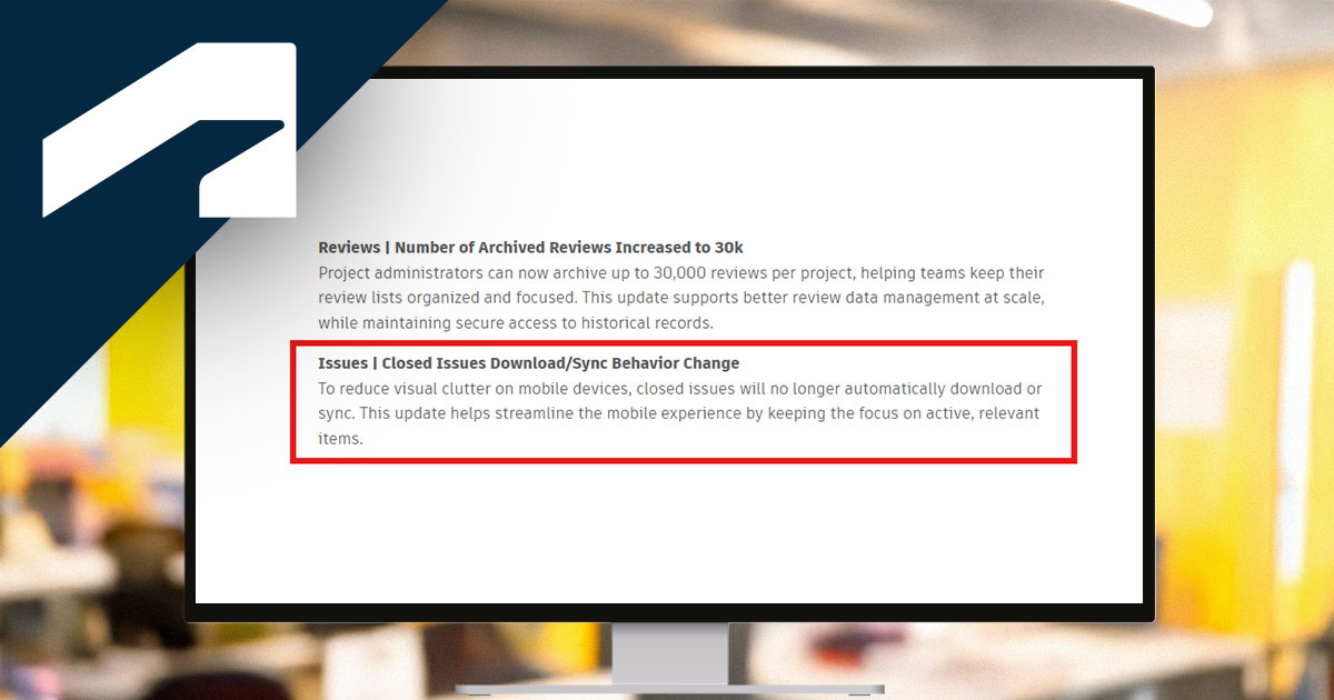 Geschlossene Aufgaben (Issues) werden ab sofort nicht mehr automatisch auf Mobilgeräten synchronisiert oder heruntergeladen.