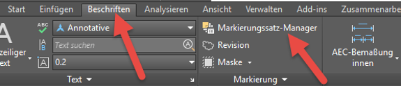 Starten Sie den Markierungssatz-Manager z.B. in AutoCAD MEP und öffnen Sie den Markierungssatz aus der entsprechenden DWF-Datei.