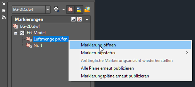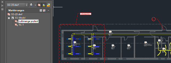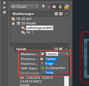 Durch Schließen des Markierungssatz-Managers werden Ihre Anmerkungen in die zugehörige DWF-Datei übernommen.