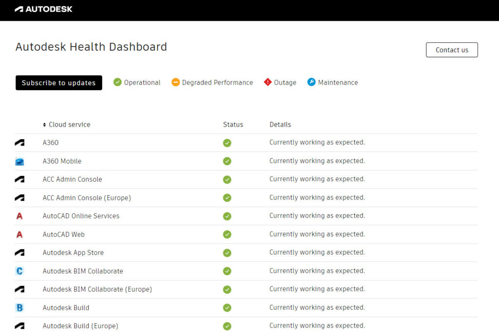 Autodesk verwendet enorme Ressourcen dafür, um die Hochverfügbarkeit sämtlicher cloudbasierter Software-Produkte und Services zu gewährleisten. Dennoch kann es vereinzelt zu Ausfällen kommen, die allerdings in der Regel nur von kurzer Dauer sind.