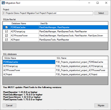 Es ist wichtig, dass Sie erst die Plant 3D Datenbanken konvertieren, bevor Sie das MigrationTool verwenden, da das Datenbank-Präfix der PlantTools Datenbanken von den Plant 3D Datenbanken entnommen wird.