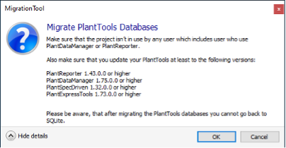 Wenn das Projekt und die PlantTools Datenbanken bereits existieren, ist zunächst das Plant 3D Projekt zu migrieren und anschließend die PlantTools Datenbanken. Zur Migration eines Plant 3D Projektes stellt AutoCAD Plant 3D ein Tool zur Verfügung. Dieses finden Sie unter: