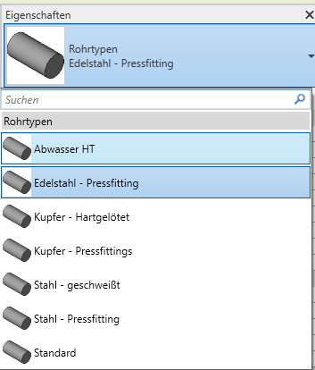 Des Weiteren gibt es in der Revit Gebäudetechnik-Vorlage von Autodesk nur sieben allgemeine Rohr-Materialien.