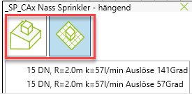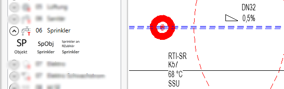 Die Sprinkler aus dem ProjectBox-Content bieten zusätzliche Parameter, die dazu dienen, die Grafik zu beeinflussen, Informationen über die Sprinkler zu erweitern und Informationen bereitzustellen, die für die Sprinklernetz-Berechnung mit dem Satelliten-Programm der Firma IDAT nützlich sind.