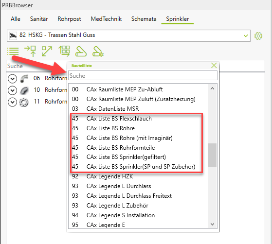 So verwundert es nicht, dass auch die Bauteillisten sehr stiefmütterlich behandelt werden. Kurzum: es steht für das Gewerk Sprinkler keine sinnvolle Bauteilliste zur Verfügung.