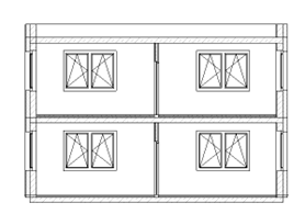 • 2 Geschosse, 2 Nachbarräume; AW-Typ 1; IW-Typ 1, Aufbau nach GEG(ENEV) U-Werte, Geschossdecke, Dach, Bodenplatte, Fenster + Türen, Räume mit Namen und Nummer, Mehrschicht-Modellierweise: mehrschichtige Wand als ein Bauteil, Einzelschicht-Modellierweise: je Wandschicht ein Bauteil.