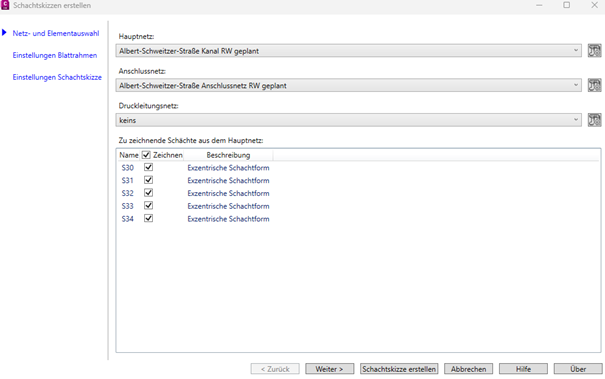 Zunächst sind das Haupt- und Anschlussnetz sowie das Druckleitungsnetz auszuwählen.