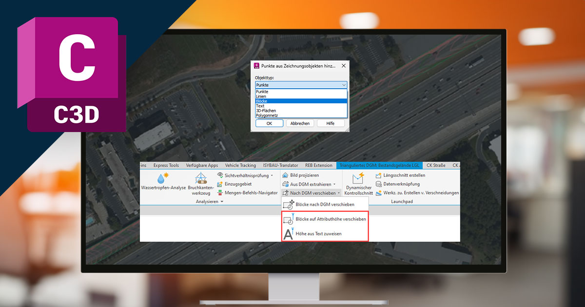 Civil 3D: Blöcke und Texte auf Höhe schieben
