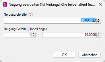 Möchten Sie eine konstante Neigung zwischen mehreren Stützpunkten festlegen, haben Sie im Project Explorer mehr Möglichkeiten im Vergleich zum Höheneditor.