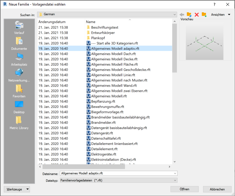 Speichern Sie Ihr Profil und öffnen Sie die Familienvorlage: Allgemeines Modell adaptiv.