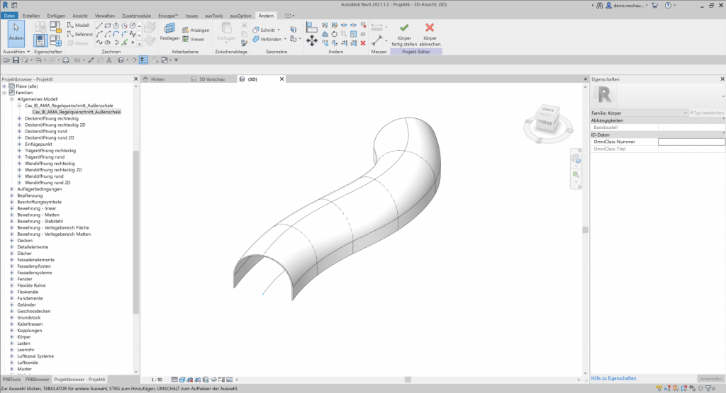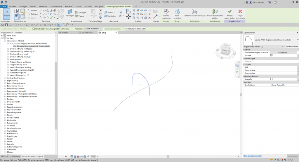 Um einen Volumenkörper zu erzeugen, öffnen Sie ein Projekt und erstellen Sie eine Projektfamilie auf der Kategorie Körper. Zeichnen Sie einen Spline und teilen Sie anschließend den Pfad.