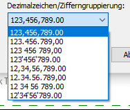 Diese beiden Einstellungen sorgen außerdem dafür, dass Tausender-Stellen entweder durch einen Punkt getrennt dargestellt werden oder nicht.