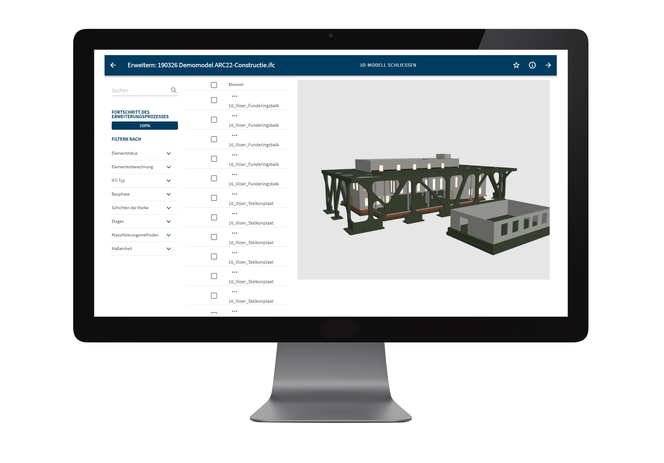 Die Plattform bietet zusätzlich auch die Möglichkeit, Industry Foundation Classes Dateien (IFC, offener Standard im Bauwesen zur digitalen Beschreibung von Gebäudemodellen) direkt auf der Plattform in einem 3D-Modell darzustellen. Somit ist ein virtueller Rundgang durch das Gebäude möglich und es lassen sich konkrete Materialien und Produkte exakt lokalisieren. Da die Plattform in der Cloud liegt, ist all dies möglich, ohne vorher eine Building Information Modeling (BIM)-Software zu installieren. Das Auslesen des IFC-Modells basiert zum einen auf einer international angewandten Grundlage (Omniclass) als auch auf der deutschen DIN 276. Der Detaillierungsgrad des 3D-Modells verbessert sich, je mehr und detailliertere Daten in der zugrunde liegenden Quelldatei verfügbar sind. Somit kann jeder Nutzer seine Datengrundlage und damit auch seinen Output direkt steuern und nach Bedarf verbessern.