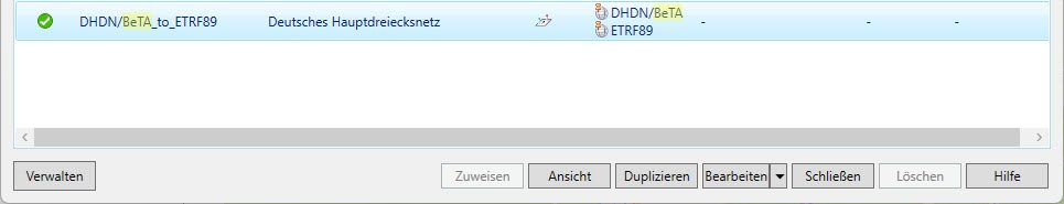 Bei der Wahl des Koordinatensystems ist unbedingt darauf zu achten, dass es den Zusatz via BeTA2007 enthält.