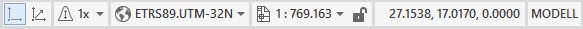 Zuerst muss der Zeichnung, die in ein anderes Koordinatensystem transformiert werden soll, das passende Koordinatensystem zugewiesen werden. Am einfachsten geht dies über die Statusleiste. Ist das Koordinatensystem nicht sichtbar, kann es mit dem Befehl MAPSTATUSBAR eingeblendet werden.
