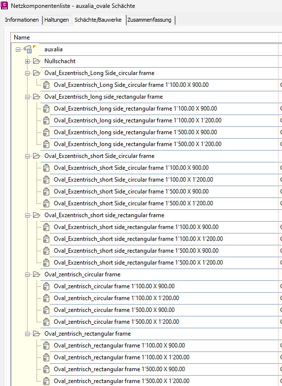 Nach der Regenerierung des Schachtkatalogs erscheinen die Komponenten in der Liste und können wie gewohnt verwendet werden.
