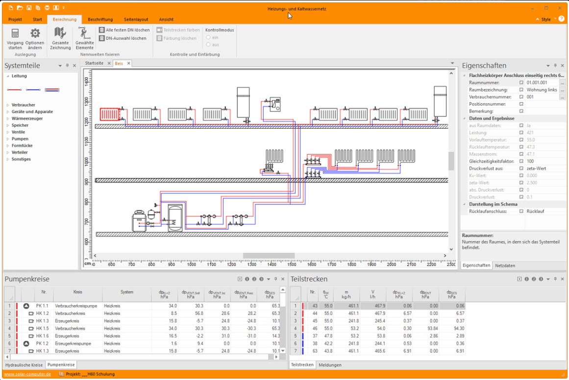 … und anschließend berechnen, auslegen, hydraulisch abgleichen und dokumentieren. Dies ist die Aufgabe des neuen SOLAR-COMPUTER-Programms „Heizungs-Rohrnetzberechnung mit Schema-Editor“ (Best.-Nr. H60).