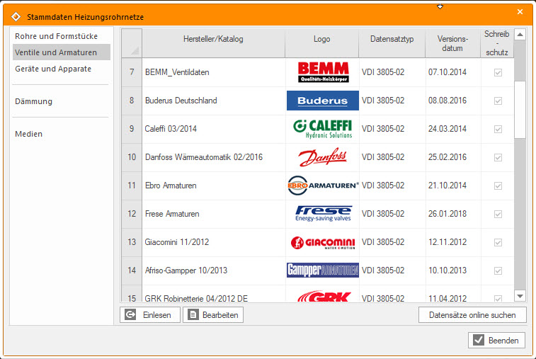 Ein komplettes Set produktneutraler Stammdaten für Systemteile, Symbole und Materialien gehört zum Lieferumfang. Alle Zeichnungs- und Berechnungsrelevanten Projektdaten sind während der Erfassung und Bearbeitung miteinander verknüpft. Während der Bearbeitung prüft das Programm die hydraulische Logik der Rohrführung des Heizungsnetzes. Neben der Drosselschaltung unterstützt das Programm zahlreiche weitere Schaltungsarten, wie sie dem aktuellen Stand der Technik entsprechen, u. a. Beimischung, Umlenk- und Einspritzschaltung.