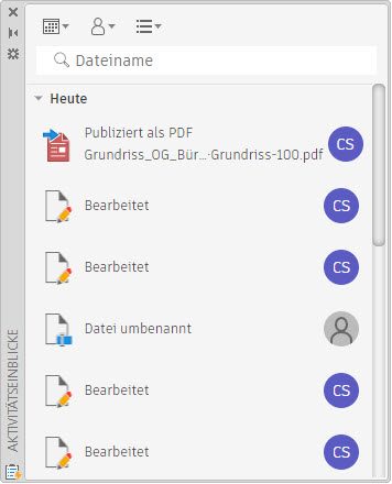 Die neue Funktion ermöglicht die Nachverfolgung verschiedener Aktionen in Zusammenhang mit einer Zeichnung. So bliebt der Nutzer über wesentliche Änderungen an einer Zeichnungsdatei informiert. Das Protokoll erfasst dabei nicht nur Ereignisse, die innerhalb von AutoCAD stattfinden wie das Bereinigen und Ändern einer Zeichnung, auch z.B. das Kopieren und Umbenennen einer Zeichnung im Dateiexplorer werden in dem Protokoll erfasst. Die Aktivitäten können nach Datum, Benutzer oder Ereignis gefiltert werden.