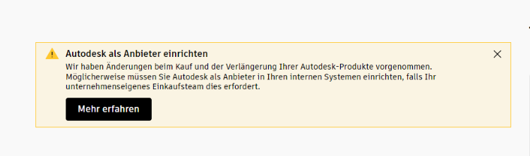 Nein, im Autodesk Account sollten Sie keine Lieferanten ändern. Wenn Ihr internes System (z.B. SAP) einen Lieferanten benötigt, legen Sie Autodesk als Lieferanten dort an, aber lassen Sie auxalia weiterhin als Fachhändler im Autodesk Account bestehen.